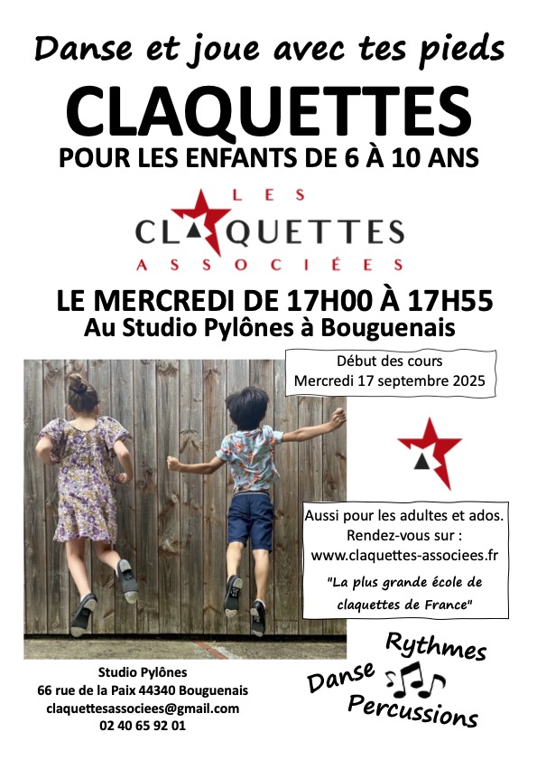 Pensez « CLAQUETTES ENFANTS », le mercredi de 17h à 17h55 – De 6 à 10 ans